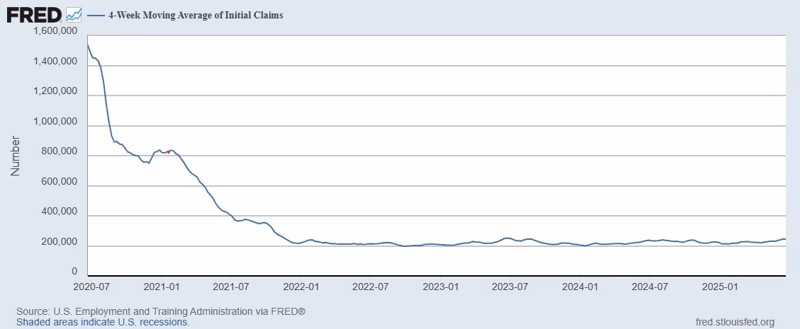 A 4-week moving average of initial jobless claims came in just over 245,000 on June 14th which, though not a substantial increase from the prior week, marks the highest level since August 2023.